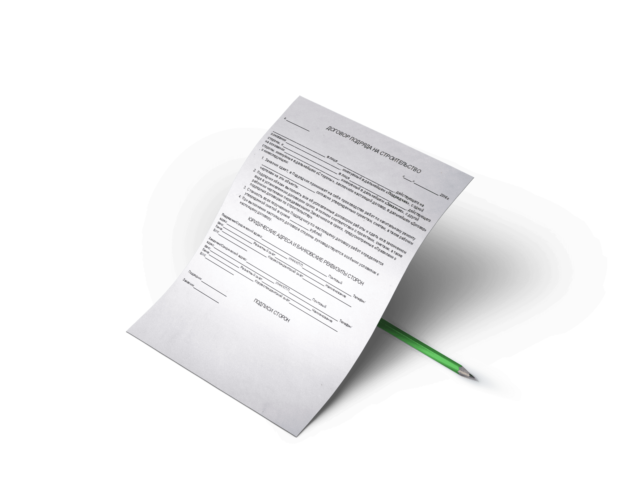 Переоформление документов проходит ПОСЛЕ окончания строительства и приёма выполненных работ, а строительство дома компания осуществляет за счёт собственных средств.