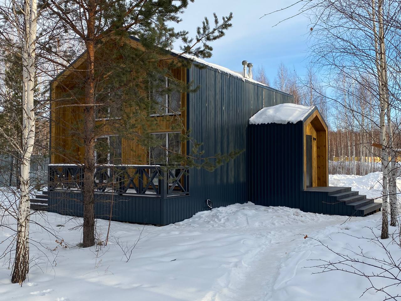 Внешняя отделка: Стеновой и кровельный профлист, имитация бруса, утепление 200 мм "Эковер".